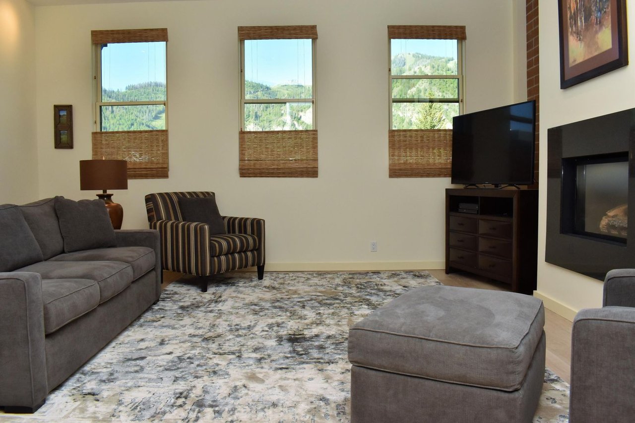 Heart of Ketchum Penthouse- A must-see for those seeking to be in the center of the Ketchum/ Sun Valley lifestyle! Enter this home through a serene courtyard and be welcomed by the Baldy views. Sophisticated yet comfortable with clean lines and exposed warm brick, this residence is offered fully-furnished. Terrace offers incredible views of mountains. Elevator with underground secure parking. This property features recent upgrades including quartz countertops and wood floors. Has spacious closets, gas fireplace, wide stairways and high ceilings, trash chute to garage, two hot water heaters, Baldy view windows throughout. Secure entry and exit with underground parking and additional storage. Terrace offers views up and down valley.